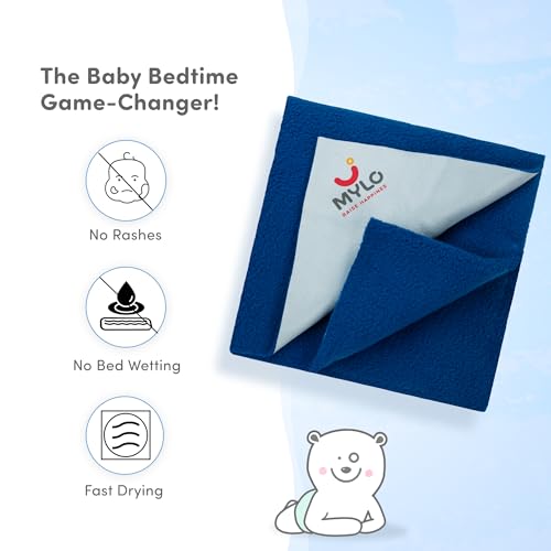 Mylo Baby Waterproof Mattress Protector for Baby (0-3 Years), Extra Absorbent, Soft and Reusable Quick Dry Sheets (100X70cm)(Cobalt, Full)
