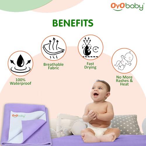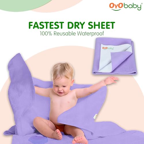 HomeBabyNurseryCrib SheetsOYO BABY - Baby Dry Sheet for New Born Babies | Infant Waterproof Bed Protector Sheet for Baby | Mattress Pads | Quickly Dry Super Soft, Reusable Mat (Single Bed-(72" X 36"), Voilet), Polycotton