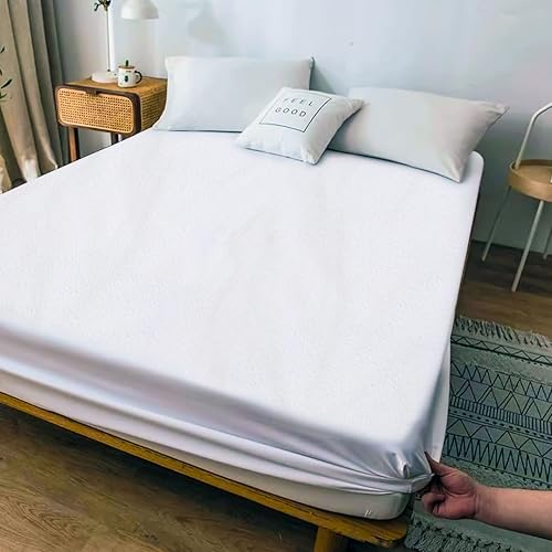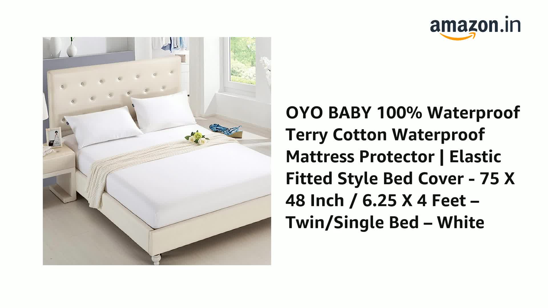 HomeBabyNurseryCrib SheetsOYO BABY Waterproof Elastic Fitted Mattress Protector Twin Size 75 x 48 Inch Ultra Soft Cotton Feel Bed Sheet Terry Cover 6.3 x 4 Feet White