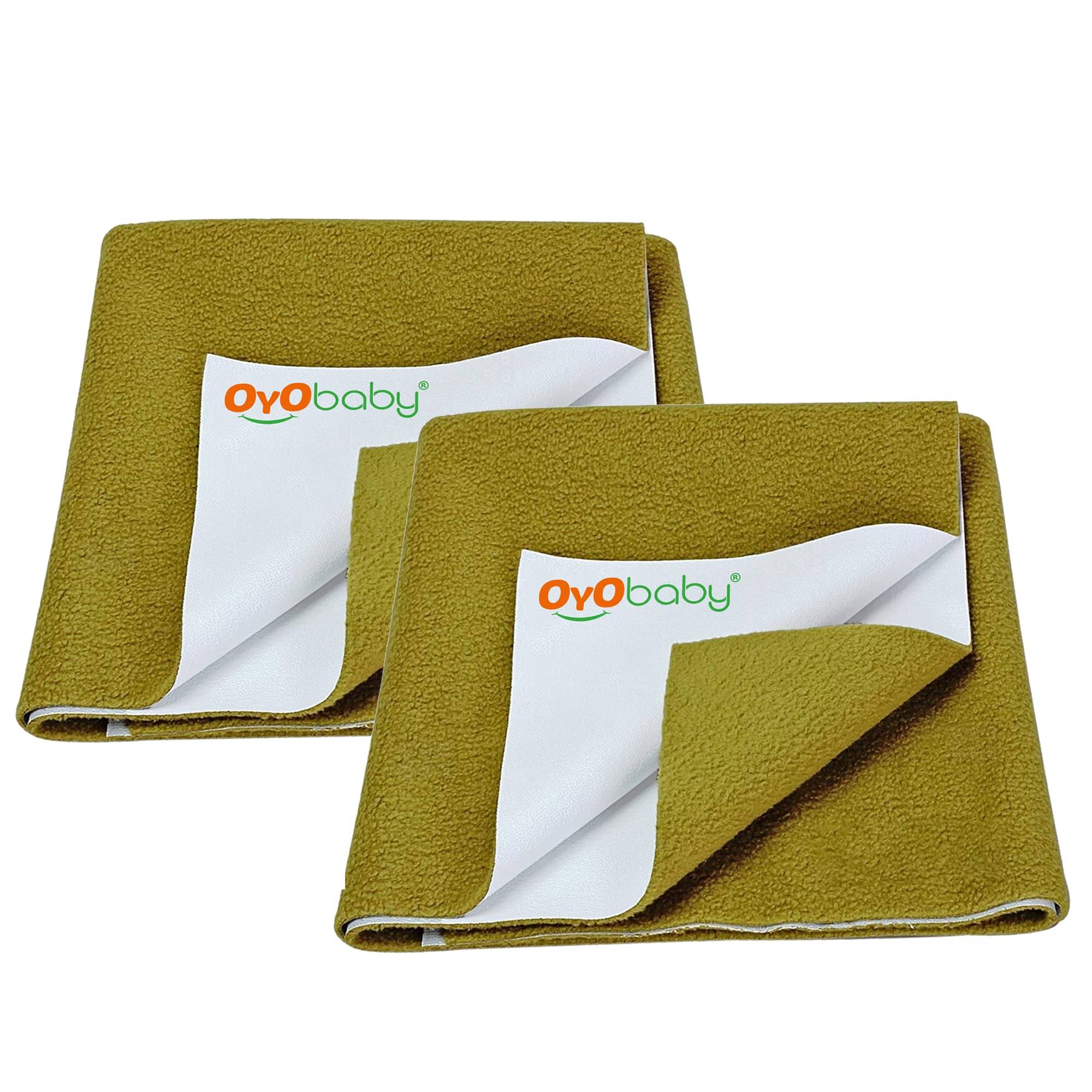 OYO BABY Cotton - Instadry Anti-Piling Fleece Extra Absorbent - Quick Dry Sheet for Baby - Baby Bed Protector - Waterproof Baby Sheet - Small(70X50 Cm)- Pack of 2 - Gold