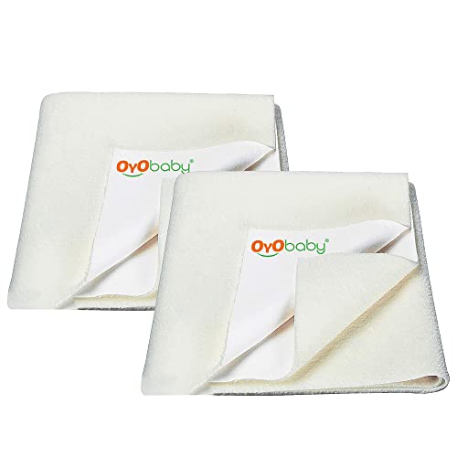 OYO BABY Instadry Anti-Piling Fleece Extra Absorbent Quick Dry Sheet for baby, Baby Bed Protector, Waterproof baby sheet, Small size 70x50cm, Pack of 2, Ivory, Microfleece