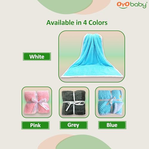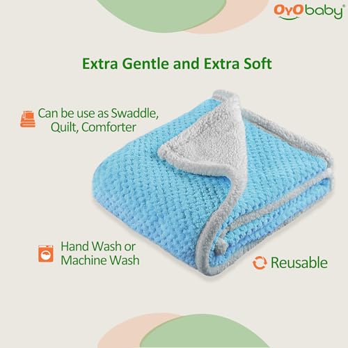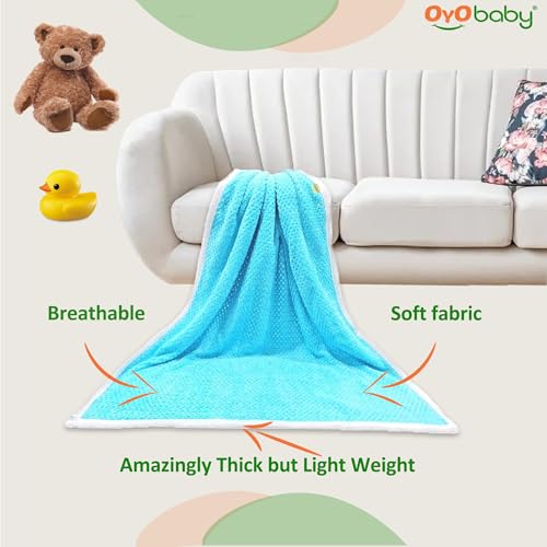 OYO BABY Super Soft Double Layered Flannel Baby Blanket - Blue | Cozy & Breathable | Warm, Soft, and Comfortable | Perfect for Newborns & Toddlers | Unisex Design for Boys & Girls