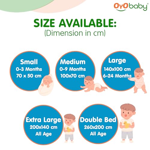 HomeBabyNurseryCrib SheetsOYO BABY Extra Absorbent Waterproof Baby Dry Sheet Medium Size (100 x 70cm) | Quick Dry Sheet for New Born Baby Bed Protector, Soft & Breathable Rubber Sheet for Bed|Firoza