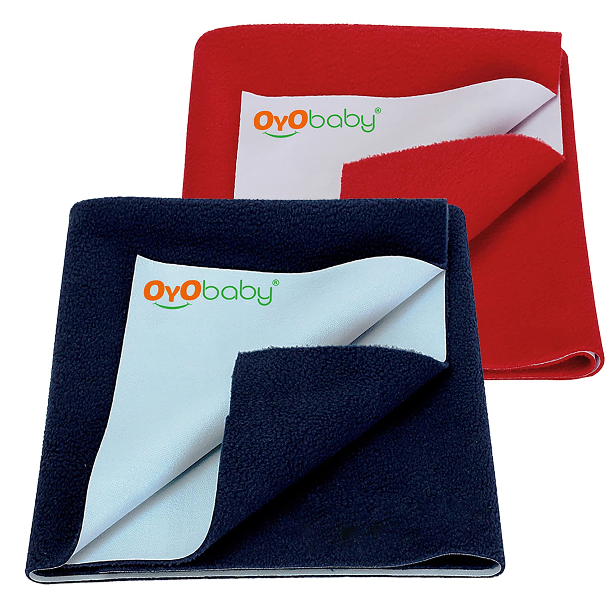HomeBabyNurseryCrib SheetsOYO BABY Waterproof Baby Bed Protector Dry Sheets for New Born Babies | Reusable Mats | Cot & Bassinet Gift Pack (Dark Sea Blue + Red),Small (70cm x 50cm), Polycotton