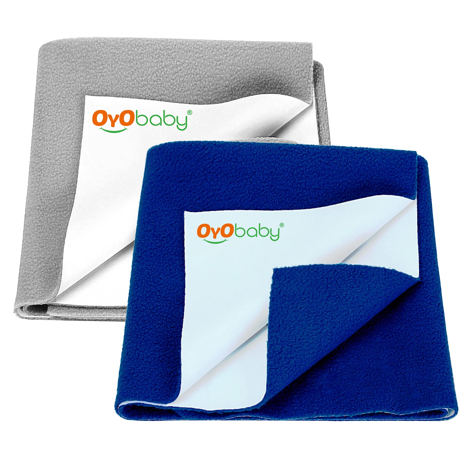 HomeBabyNurseryCrib SheetsOYO BABY Extra Absorbent Waterproof Baby Dry Sheet Small Size (70x50cm) – Pack of 2 – Quick Dry Sheet for Bed Protector, Soft & Breathable Grey + Royal Blue