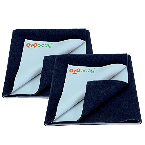HomeBabyNurseryCrib SheetsOYO BABY - Waterproof Mattress Protector Sheet | Dry Sheet for Kids and Adults - (Baby Bed Protector Medium Size - 100cm x 70cm - (Pack of 2), Dark Sea Blue), Polycotton