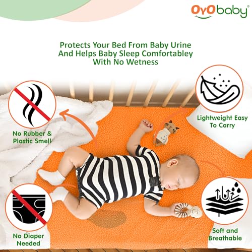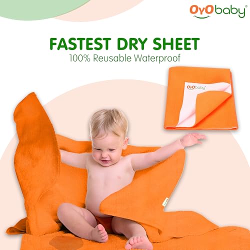 HomeBabyNurseryCrib SheetsOYO BABY Cotton - Baby Dry Sheet for New Born Babies | Infant Waterproof Bed Protector Sheet for Baby | Mattress Pads (Small - (70Cm X 50Cm) Peach)