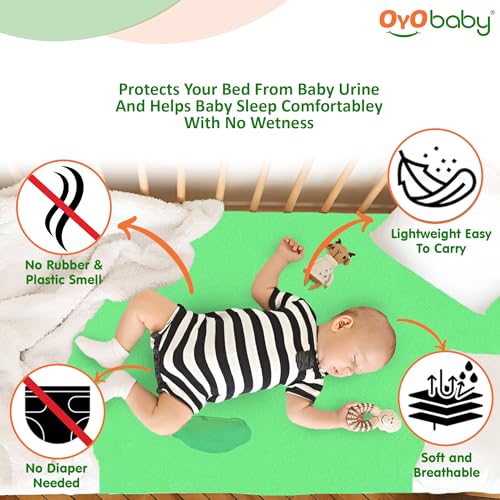 Breathable Fabric: Breathable Fabric that provides you and your sweat free sleep. OYO BABY Dry Sheet is a multi-layer product the main stay of which is a water proof breathable membrane bonded to a very cosy top surface. OYO BABY Dry Sheet protects agains
