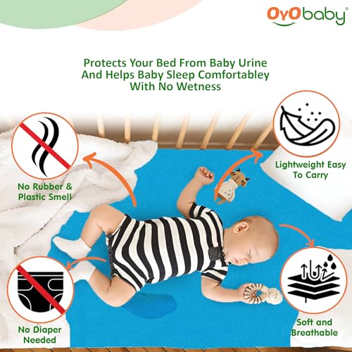 OYO BABY Quickly Dry Super Soft Waterproof and Reusable Mattress Protector, Large (Firoza)