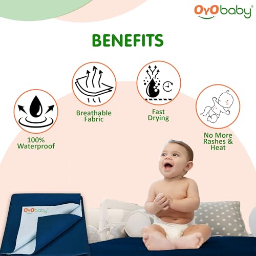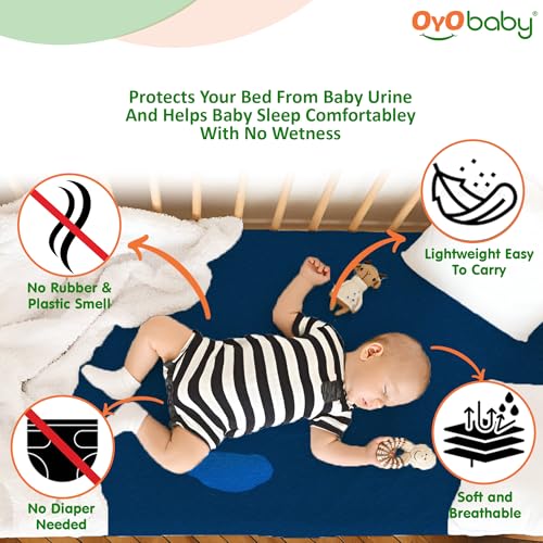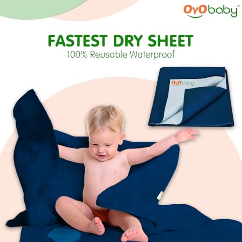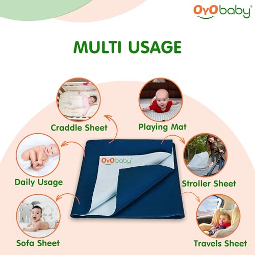 HomeBabyNurseryCrib SheetsOYO BABY Extra Absorbent Waterproof Baby Dry Sheet Small Size (70 x 50cm) | Quick Dry Sheet for New Born Baby Bed Protector, Soft & Breathable Rubber Sheet for Bed|Dark Sea Blue