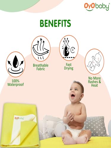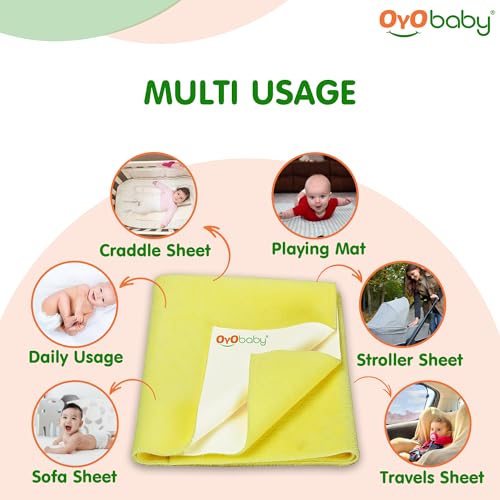 HomeBabyNurseryCrib SheetsOYO BABY Waterproof Quick Dry Sheet for Baby| Bed Pad | Baby Bed Protector Sheet for Toddler Children (X-Large (200cm x 140cm), Yellow)