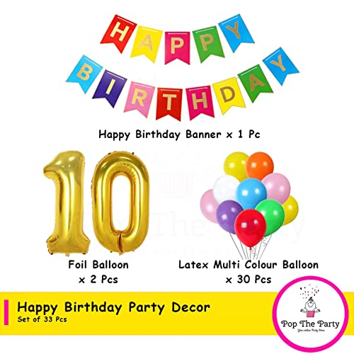 Pop the Party 10th Birthday Decoration kit with Happy Birthday Cardstock Banner , 10 Digit and 50 Latex Balloon