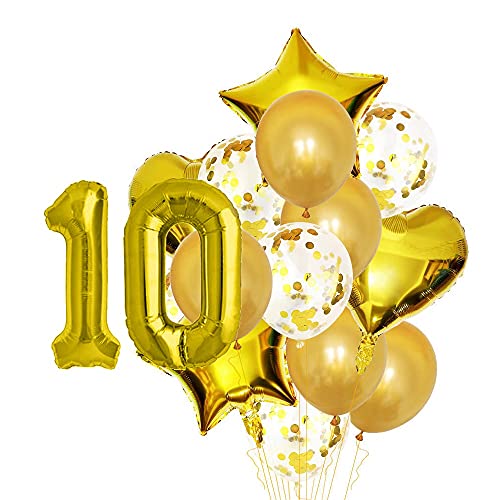HomeBabyParty SuppliesPop The Party 10th Number balloon With 10 Digit Balloon for Including Gold Latex, star, heart and Confetti Balloons for use of Birthday Party Decoration