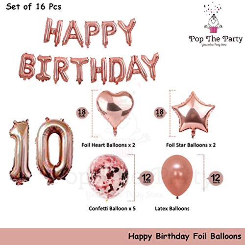 HomeBabyParty SuppliesPop The Party 10th Year Birthday Party Decorations Rose Gold Supplies Big Set with Happy Birthday Balloons Banner and 10 Digit Balloon for Including Latex, Star, Heart and Confetti Balloons