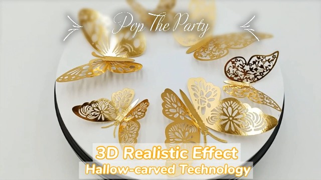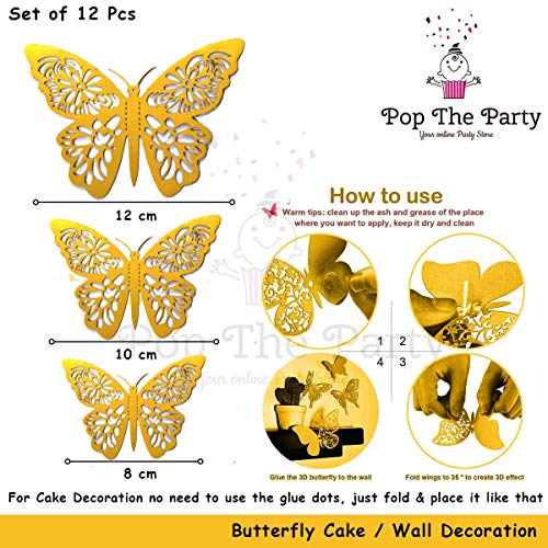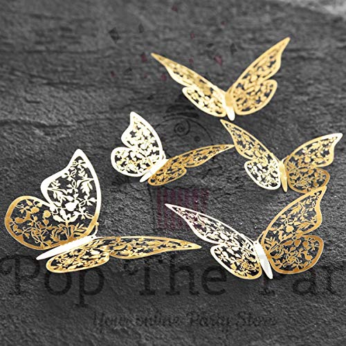 HomeBabyParty SuppliesPop the Party Butterfly Hanging Garland Party Decoration, 3D paper Butterfly Hanging Banner for Wedding Baby Shower Birthday Home Decor, (Butterfly Cake Topper Gold)