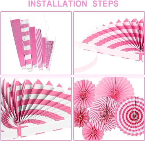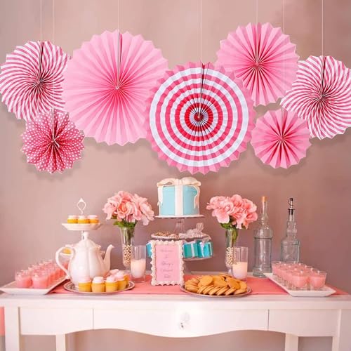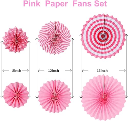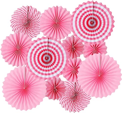 HomeBabyParty SuppliesPop The Party 12PCS Hanging Paper Fans Party Decorations Fiesta Party Supplies, Photo Props for Kids Party Birthday Baby Shower, Pink