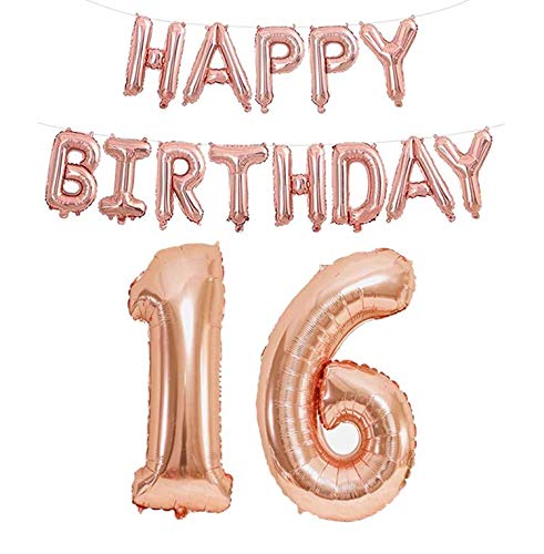 Pop The Party 16th Happy Birthday Aluminum Foil Letters Balloons for Party Supplies and Birthday Decorations (Rose Gold)
