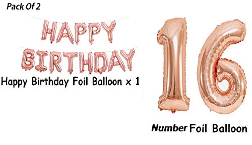 One Rose Gold Happy Birthday Foil Balloon And 16 Digit Foil Blloon