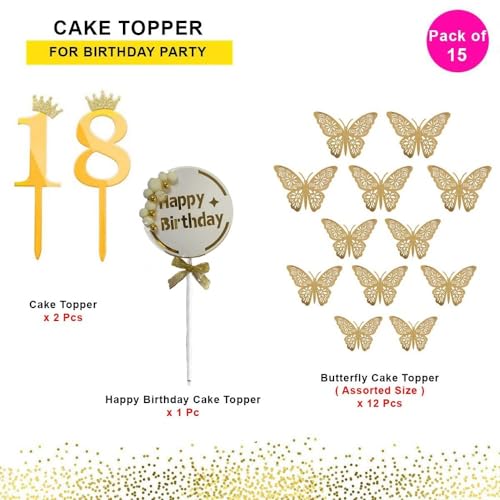 HomeBabyParty SuppliesPop The Party 18th Birthday Cake Decorations Gold Supplies Big Set With Black Happy Birthday Cake Topper, 12 Butterfly Cake Topper And Cake Topper (18 NUMBER)