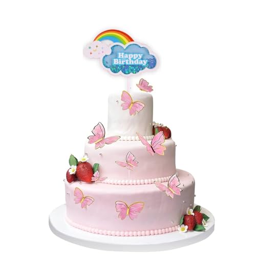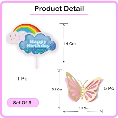 HomeBabyParty SuppliesPop The Party 1Pcs 3D Cloud Happy Birthday Cake Topper With 5Pcs Butterfly Cake Topper For Cake Decoration Baby Shower Birthday Party Cake Decoration.
