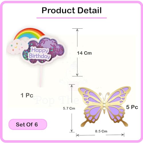 Package Includes: 1Pcs Purple Rainbow Cloud Happy Birthday Cake Topper With 5Pcs Purple Butterfly Cake Topper