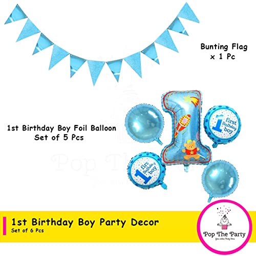 Pop The Party 1st Birthday Boy Party Decoration with Round and Bunting Flag (Pack of 5)