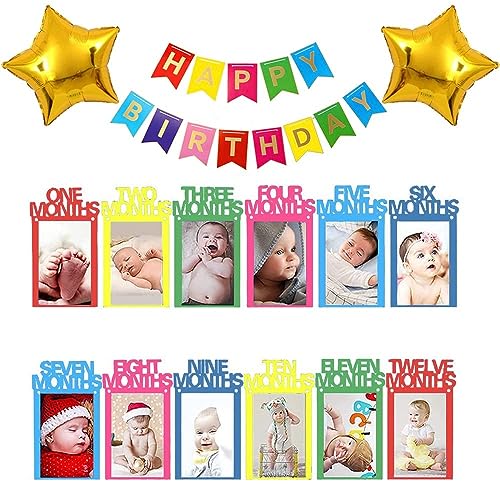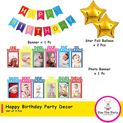 HomeBabyParty Supplies1st Birthday Decoration Kit with Star Foil Balloon and Happy Birthday and Multi Photo Banner for use of Boy Girl Birthday Decoration