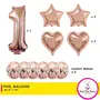 Pop The Party Nylon 1St Number Balloon With 1 Digit Balloon For Including Star, Heart And Confetti Balloons,Multicolor,14 Pcs