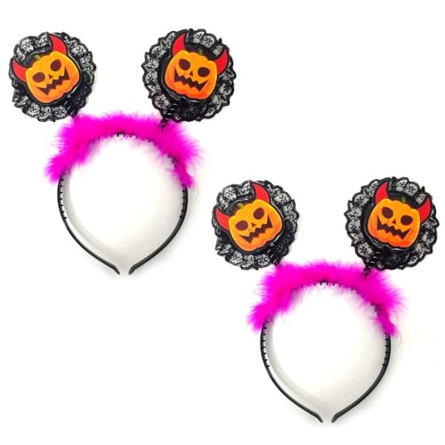 2 Pack Halloween Headbands Pumpkin Davil Cute Cartoon Hair Hoop Hair Accessories for Halloween Costume Cosplay Party Favors Photo Booth
