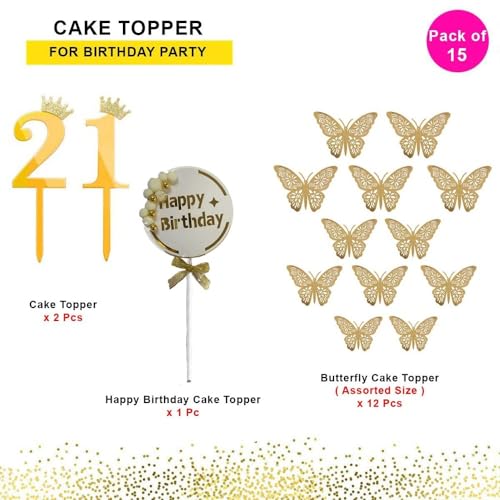 HomeBabyParty SuppliesPop The Party 21st Birthday Cake Decorations Gold Supplies Big Set With Black Happy Birthday Cake Topper,12 Butterfly Cake Topper And Cake Topper (21 NUMBER)
