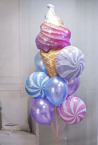 HomeBabyParty Supplies25 Pcs Ice Cream Foil Balloon With Pastel Balloons And Candy Party Balloons for Boys And Girls Birthday And Ice Cream Theme Party Decorations
