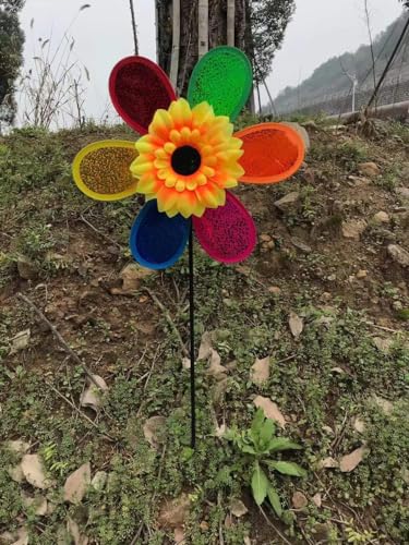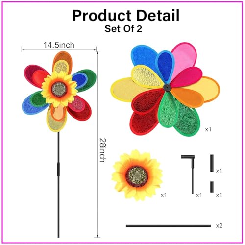 2Pcs Colorful Rainbow Sunflower Pinwheels Windmill for Yard Garden Party Outdoor Decor Camping Picnic Home Garden Decoration