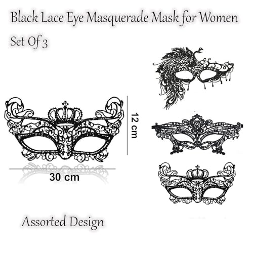 3 Eye Mask for Masquerade Fancy Dress Costume for BirthdayBridal Showal