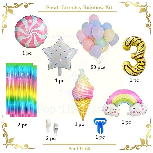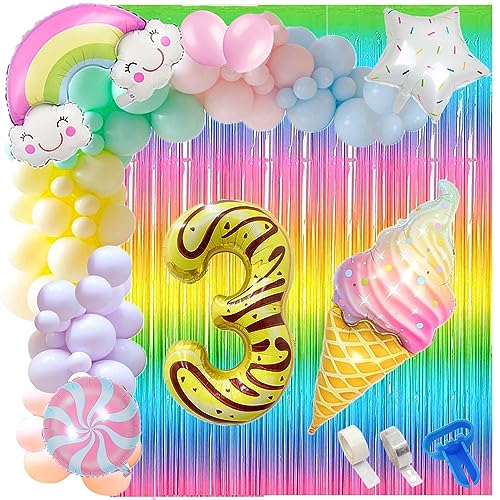 3 Number Ice Cream Balloon Garland Kit 60 Pcs Pastel Balloons Rainbow Ice Cream Curtains ArchGlue Dot Party Balloons Birthday And Ice Cream Theme Party Decorations (3 NUMBER)