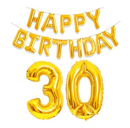 Pop The Party 30th Happy Birthday Aluminum Foil Letters Balloons for Party Supplies and Birthday Decorations (Gold)