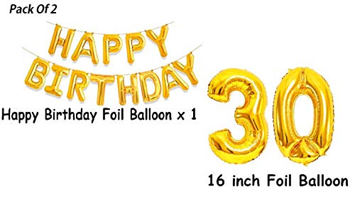 One Gold Happy Birthday Foil Balloon And 30 Digit Foil Blloon