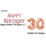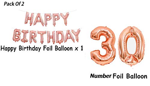 One Rose Gold Happy Birthday Foil Balloon And 30 Digit Foil Blloon