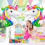 CREATE UNICORN RAINBOW PARTY DecorATIONS - Make your babys birthday party or baby shower magical and colorful! This 3 color unicorn rainbow balloons for girls comes with a pack of 2 Big Unicorn Balloon Head with different variety of design and style. Tur