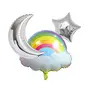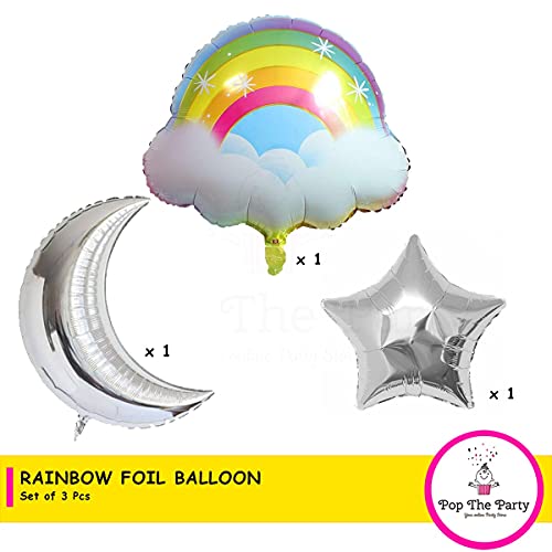Pop The Party 3PCS/Set Rainbow Cloud Shape Balloons with Silver Moon and Star Birthday Party Wedding Anniversary Decoration