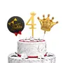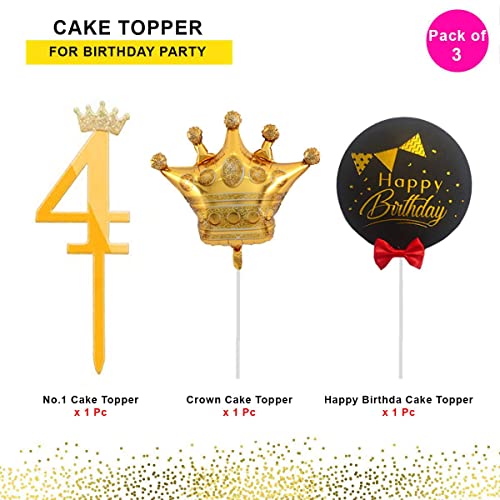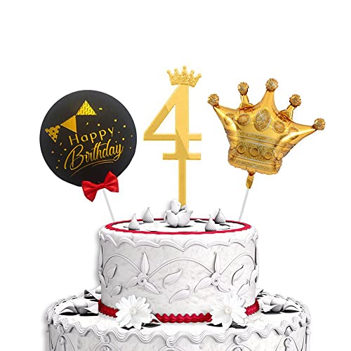 HomeBabyParty SuppliesPop The Party 4th Birthday Cake Decorations Gold Supplies Big Set with Black Happy Birthday Cake Topper, One Gold Crown Balloon and 4 Digit Cake Topper
