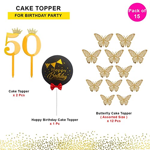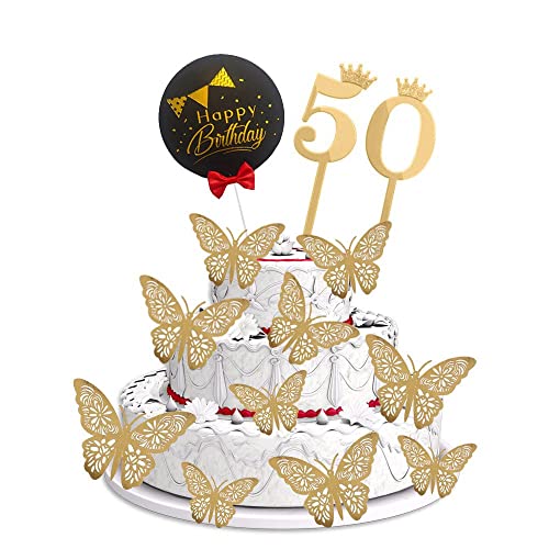 HomeBabyParty SuppliesPop The Party 50th Birthday Cake Decorations Gold Supplies Big Set with Black Happy Birthday Cake Topper, 12 Butterfly Cake Topper and 50 Digit Cake Topper