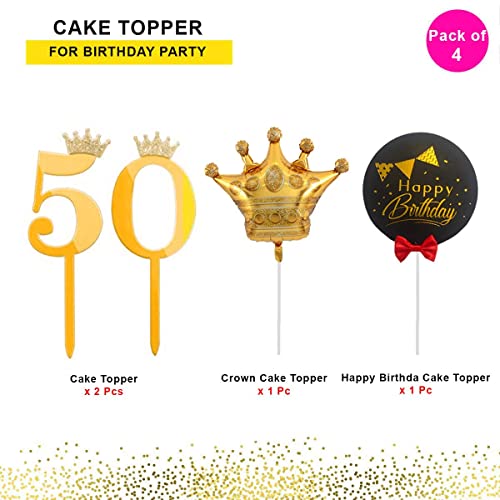 HomeBabyParty SuppliesPop The Party 50th Birthday Cake Decorations Gold Supplies Big Set with Black Happy Birthday Cake Topper, One Crown Balloon and 50 Digit Rose Gold Cake Topper