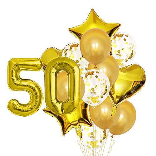 2X Heart Foil 2 X Star Foil 5X Confetti Balloon 5X Latex Balloon Fifty Number Balloon