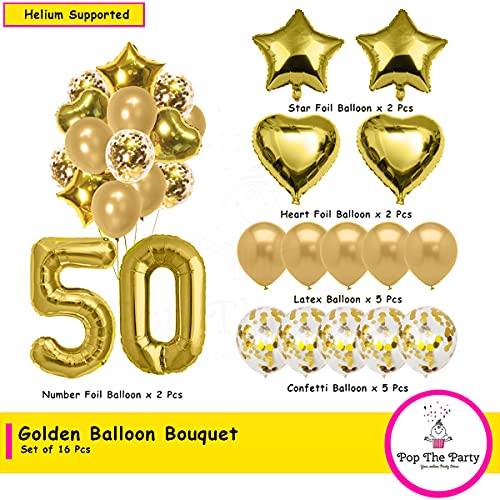 Pop The Party 50th Number balloon With 50 Digit Balloon for Including Gold Latex, star, heart and Confetti Balloons