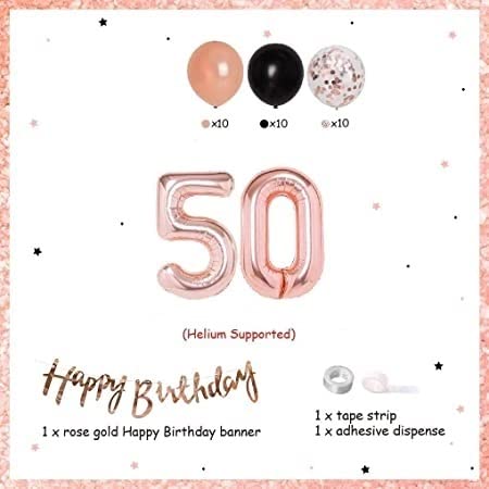 HomeBabyParty SuppliesPop The Party 50th Party Decorations Rose Gold Black Balloon Garland Kit 50 Years Old Birthday Decorations for Women Her Mom Happy Birthday Banner