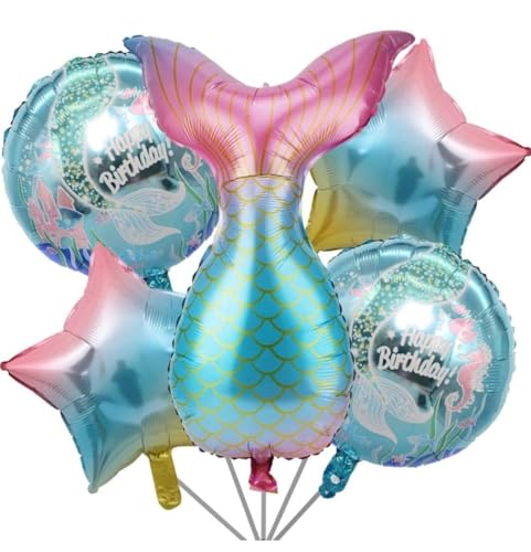 Pop The Party 5Pcs Mermaid Theme Decoration With Round And Star Foil Balloon For Birthday Decoration Kit|Multicolor