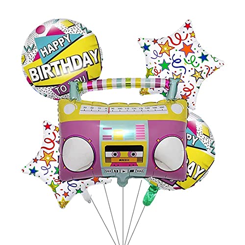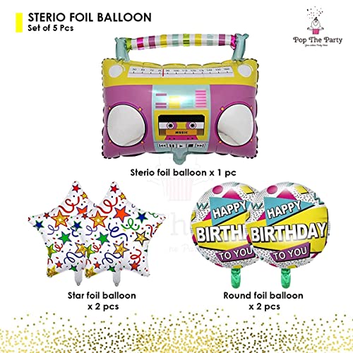 Pop The Party 5pcs Music Theme Decoration with Music, Star, Round Foil Balloon for Birthday Décor