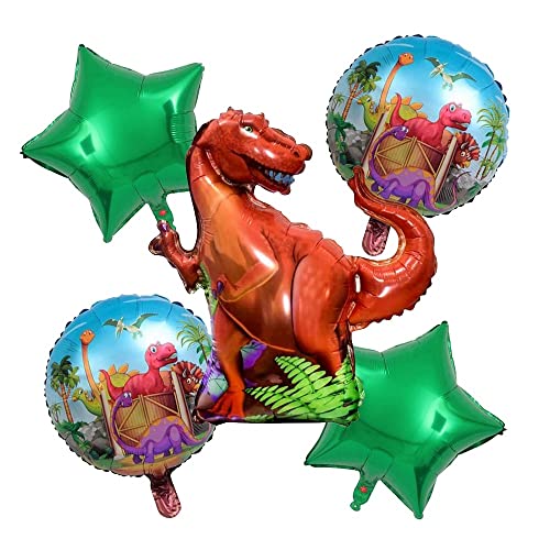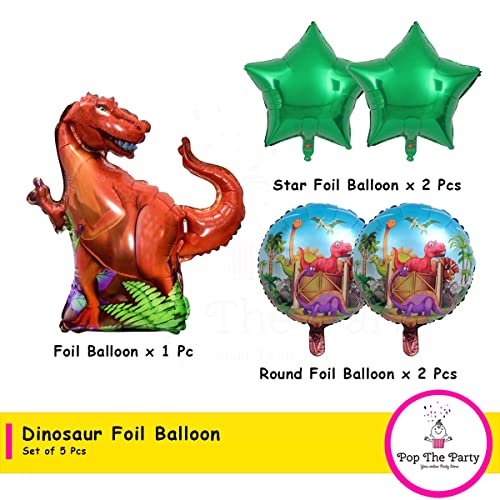 Pop The Party 5PCS/Set Dinosaur Shape Balloons with Star and Round Foil Birthday Decoration