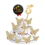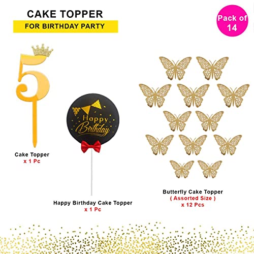 HomeBabyParty SuppliesPop The Party 5th Birthday Cake Decorations Gold Supplies Big Set with Black Happy Birthday Cake Topper, 12 Butterfly Cake Topper and 5 Digit Cake Topper