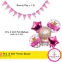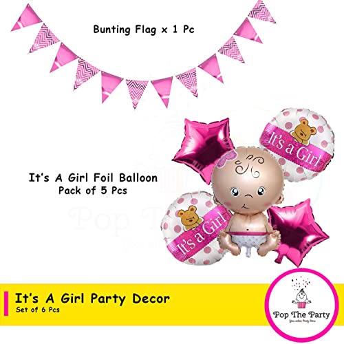 Pop The Party 6 pcs It's a Girl Baby Set, Pink Star, Round Balloon and Bunting Flag for Baby Shower Decoration